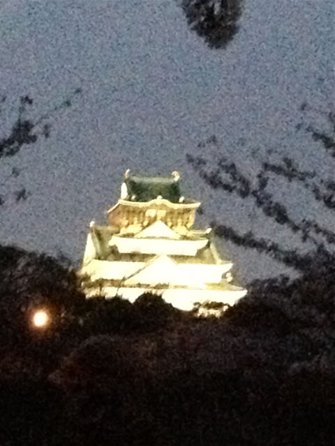 夜の大阪城公園、桜よりもやっぱり大阪城が見たくなるw